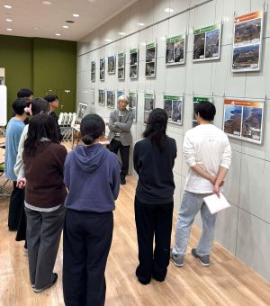 私は、写真にある被災地の2011年とその10年後の空撮を見比べてもらった。海辺の町々の変貌した風景、高台移転の跡の祈念公園の埋めようのない空間、膨大な土砂で嵩上げした後も人も家もが戻らぬ白い空地、すっかり別な街で新しい住民と暮らす再建地…。